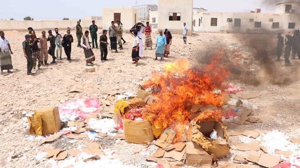 وأكد نائب مدير أمن المهرة – مدير البحث الجنائي العقيد أحمد علي رعفيت، إن هذه الكميات التي جرى حرقها اليوم تم ضبطها أثناء محاولة تهريبها إلى سلطنة عمان.