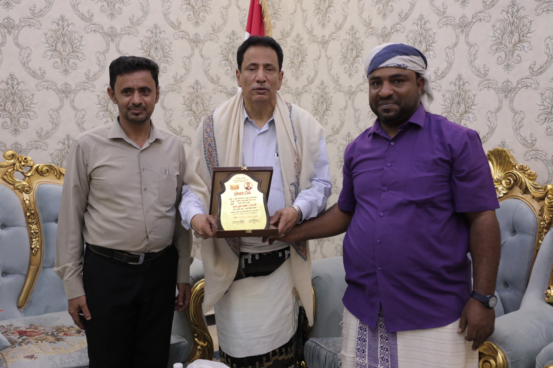 قدم مدير عام مكتب الشؤون الاجتماعية والعمل بمحافظة المهرة الأستاذ فايز بلحاف درع شكر وعرفان لمعالي الأستاذ محمد علي ياسر محافظ محافظة المهرة رئيس المجلس المحلي، وذلك لدعمه المادي والمعنوي في إنجاح دورة الخياطة والتفصيل التي أقامها مركز تنمية المجتمع والأسر المنتجة التابع لمكتب الشؤون الاجتماعية .