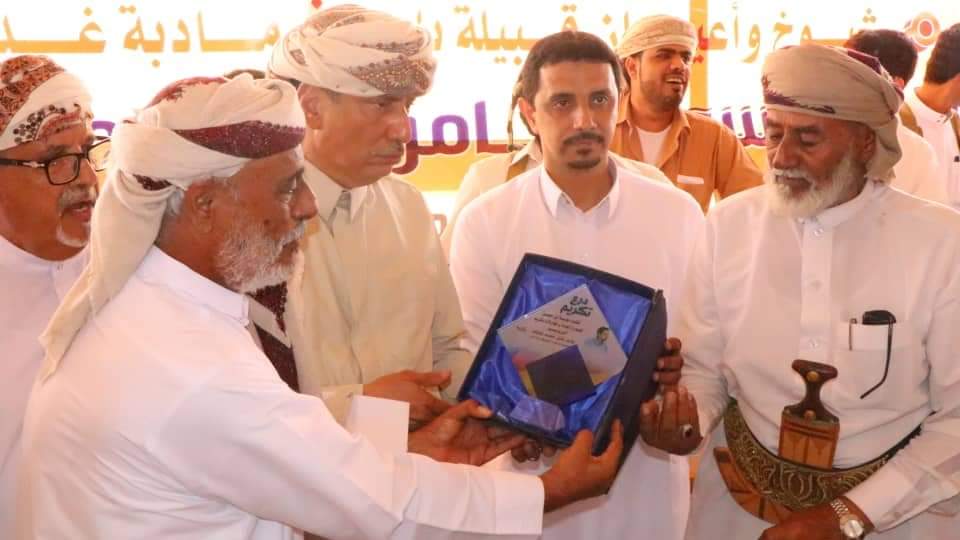 وفي ختام الاحتفالية – التي أقيمت في منطقة الفيدمي – كرمت قبيلة بلحاف وجهات عدة ، المحافظ بن ياسر، و البروفسور عامر بلحاف بدروع شكر وتقدير متنوعة.