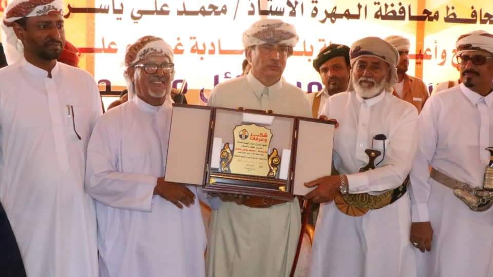 وألقى البروفسور عامر بلحاف كلمة استعرض فيها المراحل التي مر بها حتى وصل إلى هذا المستوى العلمي ، معبرا عن شكره الجزيل للسلطة المحلية على حضورها .. ومشيدا بما حققته السلطة المحلية ممثلة بالمحافظ الأستاذ محمد علي ياسر من مشاريع وإنجازات في مختلف المجالات، لافتا إلى أن وجه المحافظة تغيّر خلال العام الماضي، وأصبحت المهرة واحة للتنمية والسلام من خلال إنجاز كثير من المشاريع والخدمات كالكهرباء والمياه والصحة والتعليم والطرق وغيرها، بالإضافة إلى الحالة الأمنية المستقرة ومكافحة الظواهر السلبية الخطيرة.