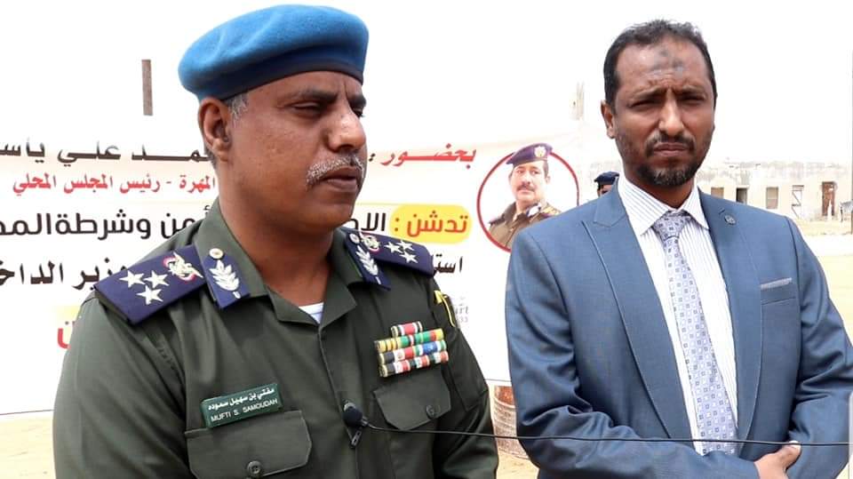 دشن وكيل أول محافظة المهرة الأستاذ مختار بن عويّض الجعفري، ومدير عام الأمن والشرطة بالمحافظة العميد مفتي سهيل صموده، اليوم، توزيع الدفعة الأولى من السيارات المقدمة من معالي وزير الداخلية اللواء الركن إبراهيم حيدان لإدارة الأمن والشرطة بمحافظة المهرة.