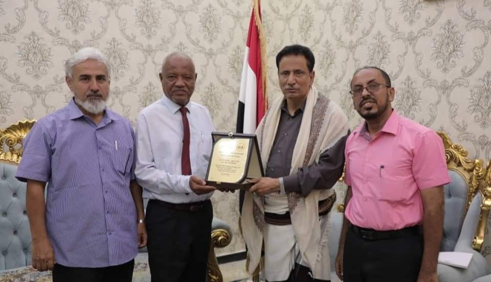 وخلال اللقاء قدم المحافظ “بن ياسر” درع شكر وعرفان لعميد كلية التربية سابقاً الدكتور صالح كرامة قمزاوي لجهوده الكبيرة في تأسيس وإنشاء كلية التربية بمحافظة المهرة.