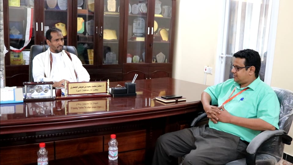 التقى وكيل أول محافظة المهرة الأستاذ مختار بن عويض الجعفري، اليوم، بمكتبه، مدير عام الإدارة العامة للتدريب والبحوث بالمحافظة، الأستاذ محمد أحمد شملان، ومنسق مشروع دعم الاستقرار التابع للوكالة الألمانية (GlZ) المهندس مازن الدعرهي وذلك لمناقشة سبل تنفيذ برامج تدريبية للقطاع الوظيفي بالمحافظة.