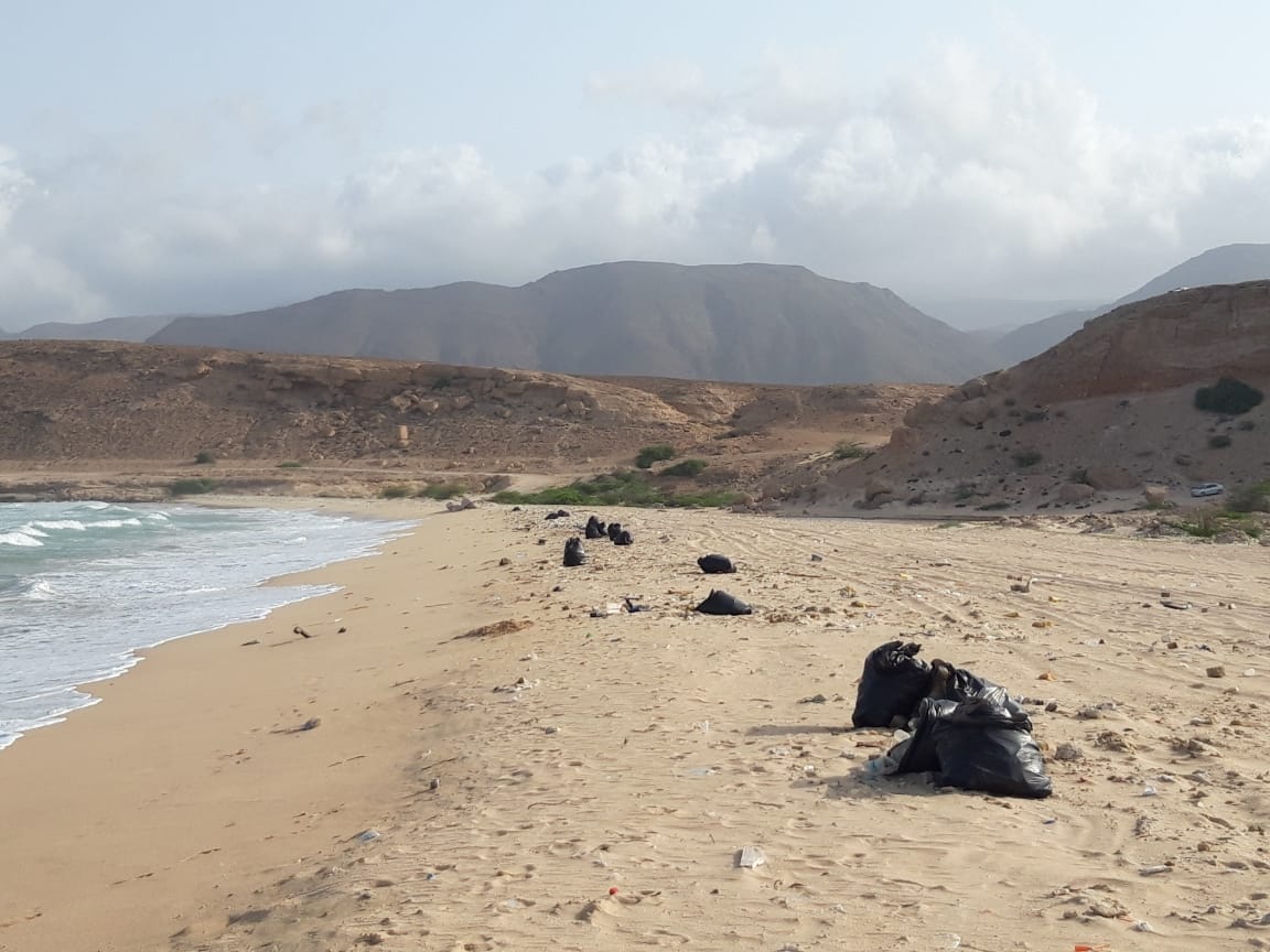 وشملت الحملة تنظيف كامل للشاطئ وتجميع المخلفات في الموقع المخصص لها ولازالت مستمرة للغد .