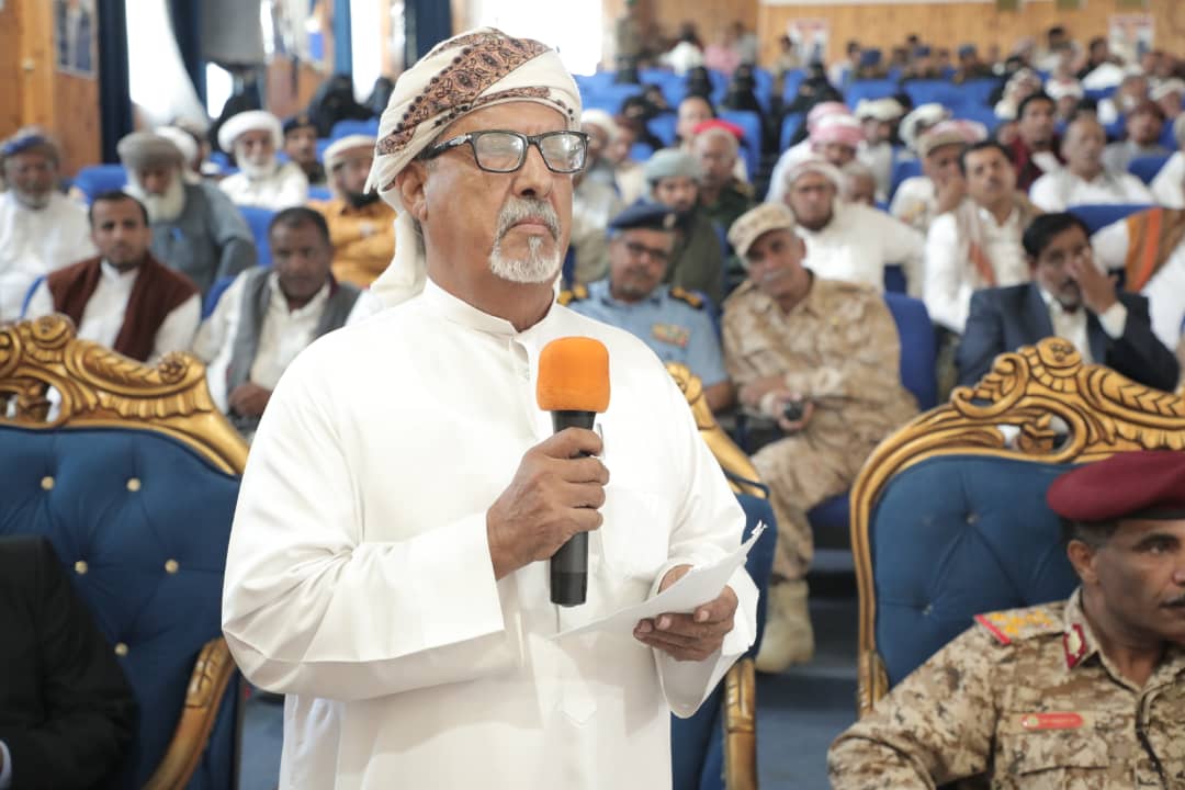 كلمة المهرة اولاً مسؤوليتكم انظروا ماذا موجود في المهرة ابناء اليمن جميعاً وجميعهم يجدون لكم الشكر والتقدير والثناء، وجميعهم لم يمارسوا جرائم ولم يمارسوا عبثاً غير ، الا بعض النشاز ، احترامًا لمكانة المهرة، ولذلك المهرة بأبنائها يجب أن تحفظ الامن والاستقرار والسلام وانا واثق ان قيادة السلطة المحلية في المحافظة على رأسها الاخ محمد علي ياسر وهؤلاء الرجال العاملين معه، انتم في بر الامان انتم في مأمن تماما من المخاطر والمنزلقات.