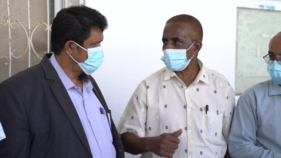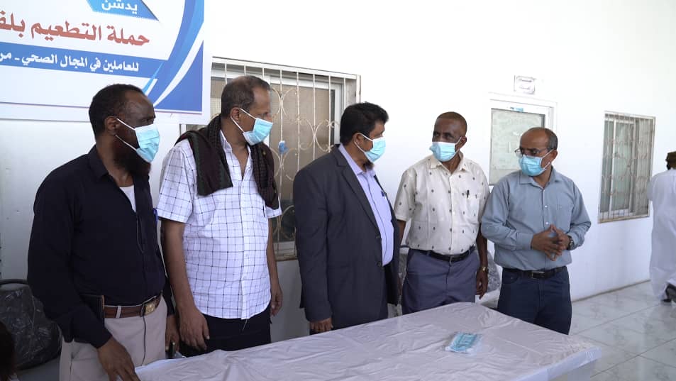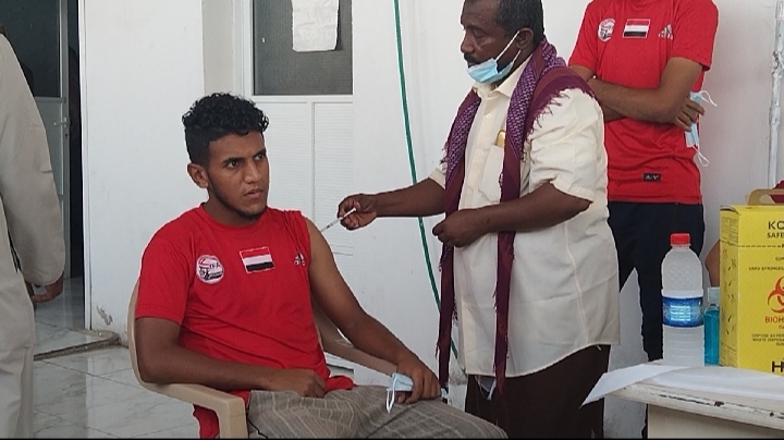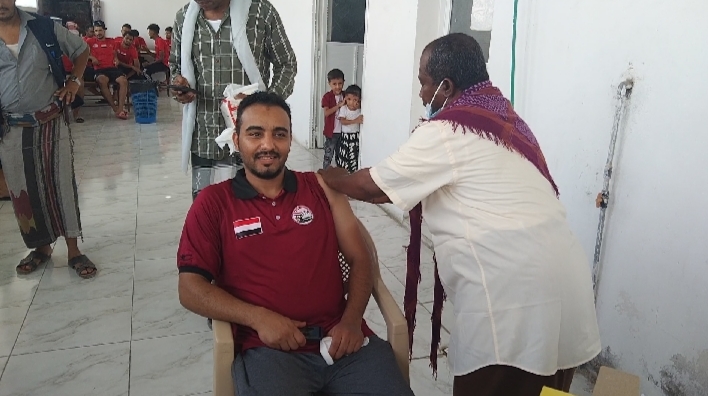 وبدأ تدشين التطعيم بالأسماء الواردة من منصة وزارة الصحة العامة والسكان ومن ضمنهم إدارة ومدربي ولاعبي المنتخب الأولمبي لكرة القدم الذي يتواجد حاليا في محافظة المهرة.