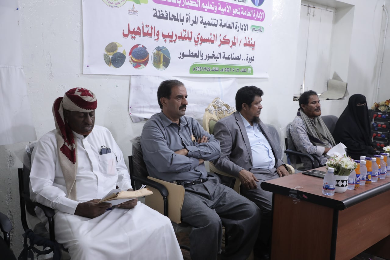 وكانت مديرة المركز النسوي للتدريب والتأهيل الاستاذة خديجة سعيد كلشات قد أوضحت أن الهدف من الدورة اكساب المرأة الخبرة والمهارة في كيفية صناعة البخور والعطور وايجاد مصدر دخل خاص بها .