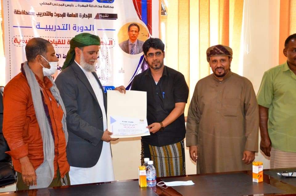 اختتمت الإدارة العامة للبحوث والتدريب بمحافظة المهرة، اليوم، دورة المهارات الإدارية التي استهدفت مدراء عموم المكاتب التنفيذية بالمحافظة، برعاية معالي الأستاذ محمد علي ياسر محافظ محافظة المهرة رئيس المجلس المحلي.