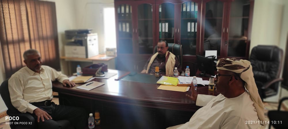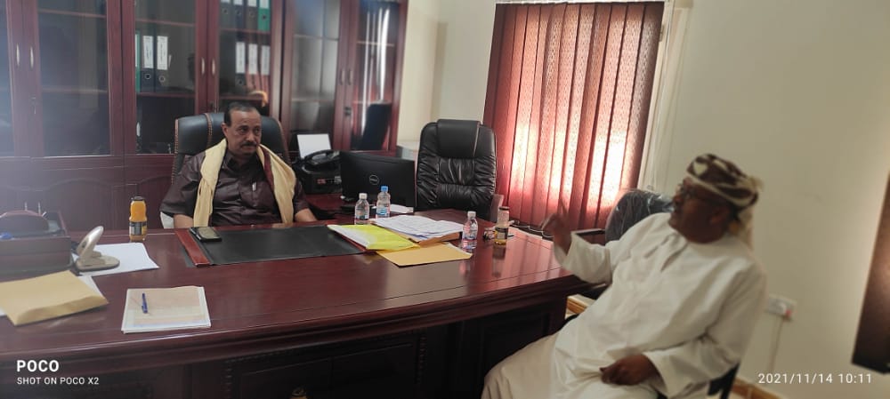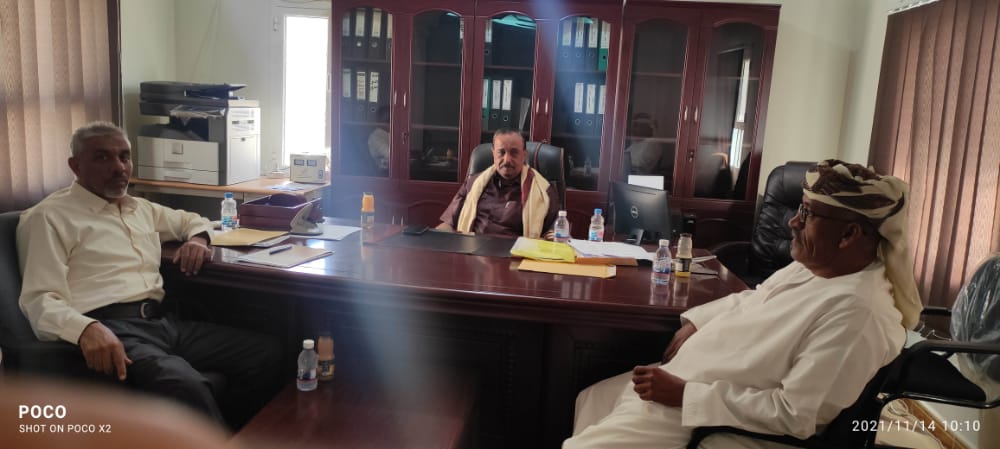 التقي القائم بأعمال مدير عام مديرية سيحوت الشيخ محمد أحمد سعيد الزويدي، صباح اليوم، الأحد، بالعاصمة الغيضة، مدير عام مكتب الأشغال العامة والطرق بالمحافظة المهندس خالد العماد.