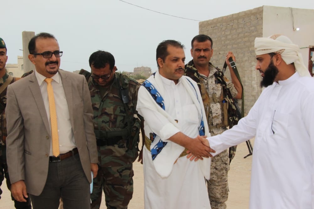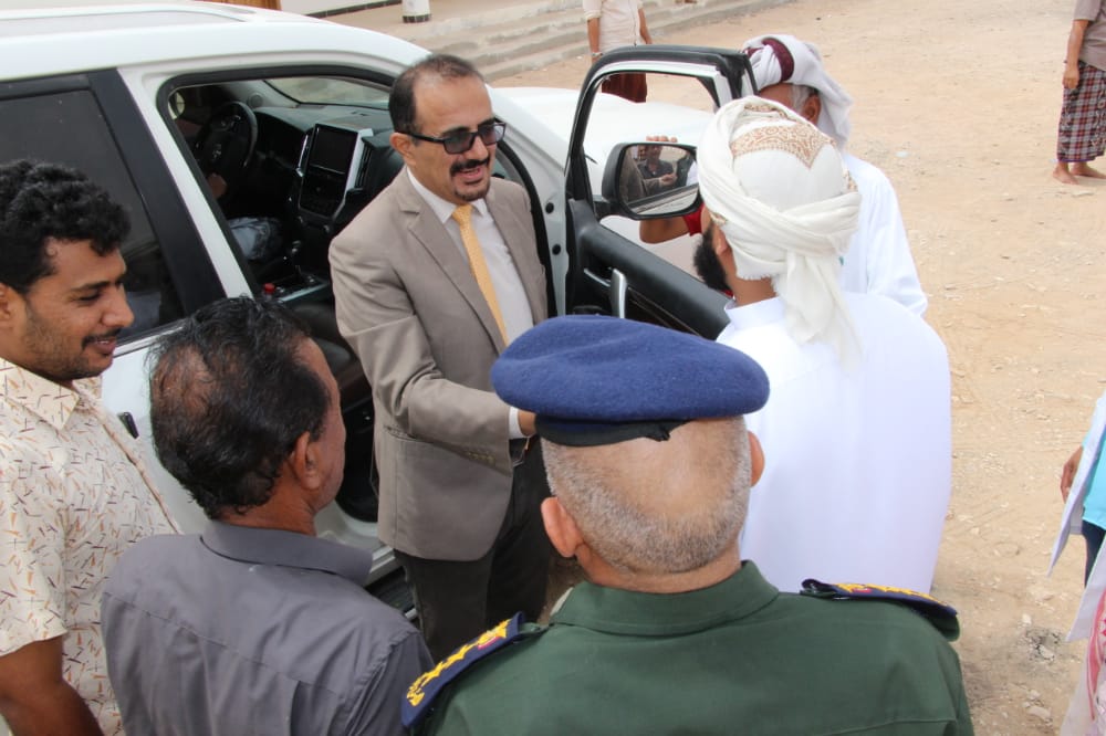 وكان في استقبال الوزير بحيبح مدير عام المديرية الشيخ فيصل بن حازم الجدحي وأمين عام المجلس المحلي الشيخ سالم عيسى عفرار وبخيت محمد عليان عضو الهيئة الإدارية رئيس لجنة الشؤون الإجتماعية والدكتور محمد خالد شلال مدير مكتب الصحة والسكان بالمديرية وعدداً من مدراء المكاتب التنفيذية والقيادات الأمنية والكوادر الصحية بالمديرية.