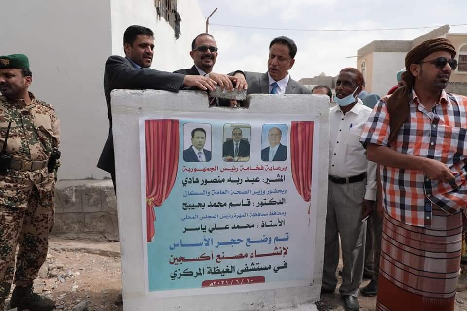 وضع معالي وزير الصحة العامة والسكان، الدكتور قاسم بحيبح، ومعالي محافظ محافظة المهرة – رئيس المجلس المحلي، الأستاذ محمد علي ياسر، اليوم الخميس، حجر الأساس لمشروع إنشاء مصنع أوكسجين بمستشفى الغيضة المركزي، برعاية فخامة رئيس الجمهورية القائد الأعلى للقوات المسلحة المشير الركن عبد ربه منصور هادي.