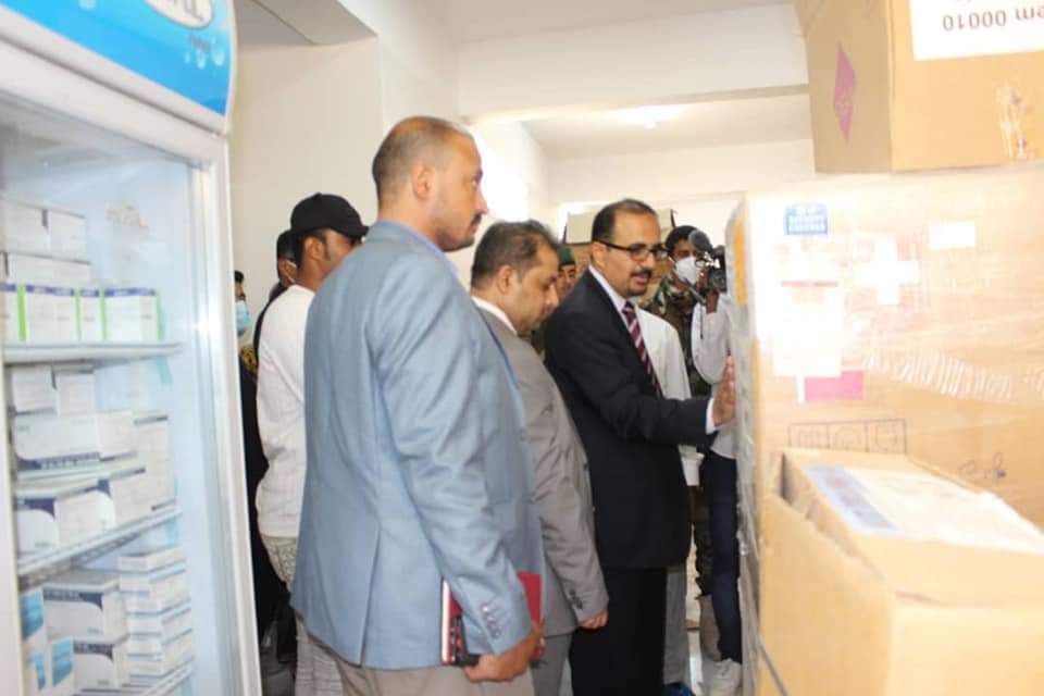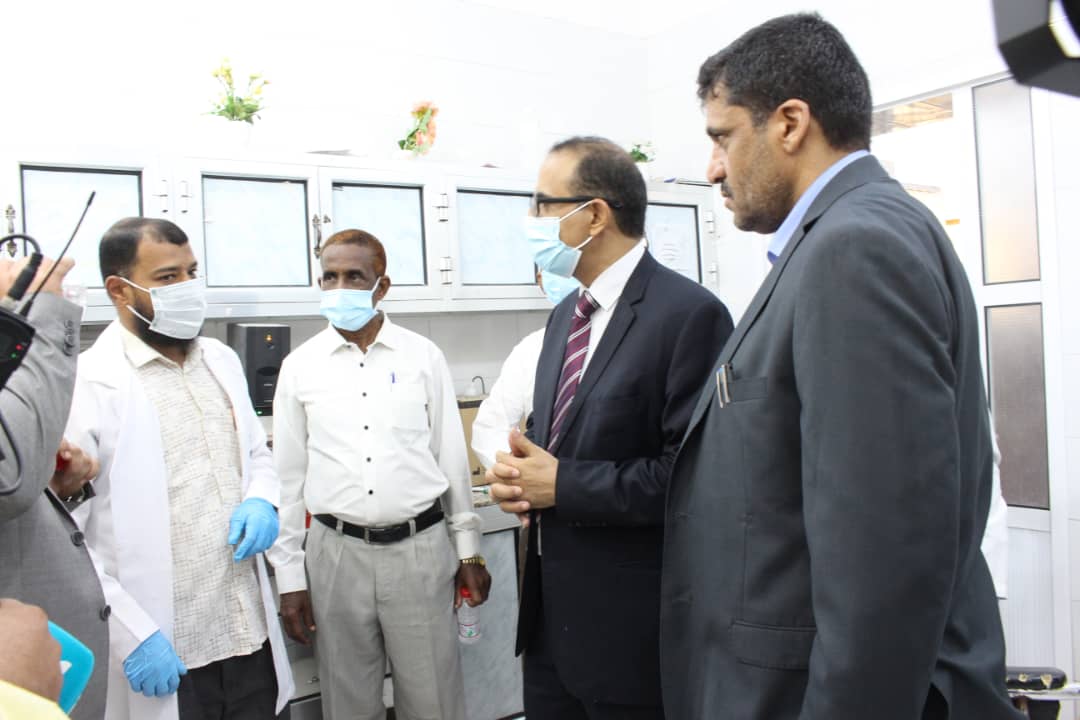 الى ذلك اطلع الوزير بحيبح على سير العمل في مركز الحميات ووحدة التشخيص الجزيئية الـ (PCR) الواقعة داخل حرم مستشفى الغيضة المركزي ، متعرفاً على مستوى جاهزيتمها لاستقبال أي حالات اشتباه بفيروس “كورونا”.