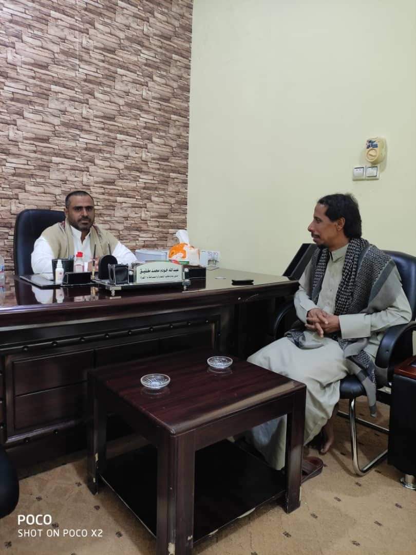 التقى مدير عام مكتب وزارة الصناعة والتجارة محافظة المهرة الأستاذ عبدالله خودم محمد بمدير مكتب الصناعة والتجارة بمديرية شحن الأخ / محمد سعيد زعبنوت للاطلاع على نشاط المكتب بالمديرية ومناقشة اهم الصعوبات التي تواجهها إدارة المكتب بالمديرية .