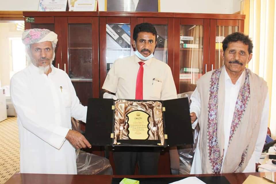 كرمت إدارة مركز السلطان قابوس الصحي بمدينة شحن اليوم قيادة السلطة المحلية بمديرية شحن ممثلة بالمدير العام الشيخ محمد بن محمد زعبنوت بدرع تذكاري وشهادة تقدير على جهوده المبذوله ودعمه اللامحدود لتطوير قطاع الصحة وتطوير الخدمات الطبية التي يقدمها المركز للمواطنين بالمديرية.