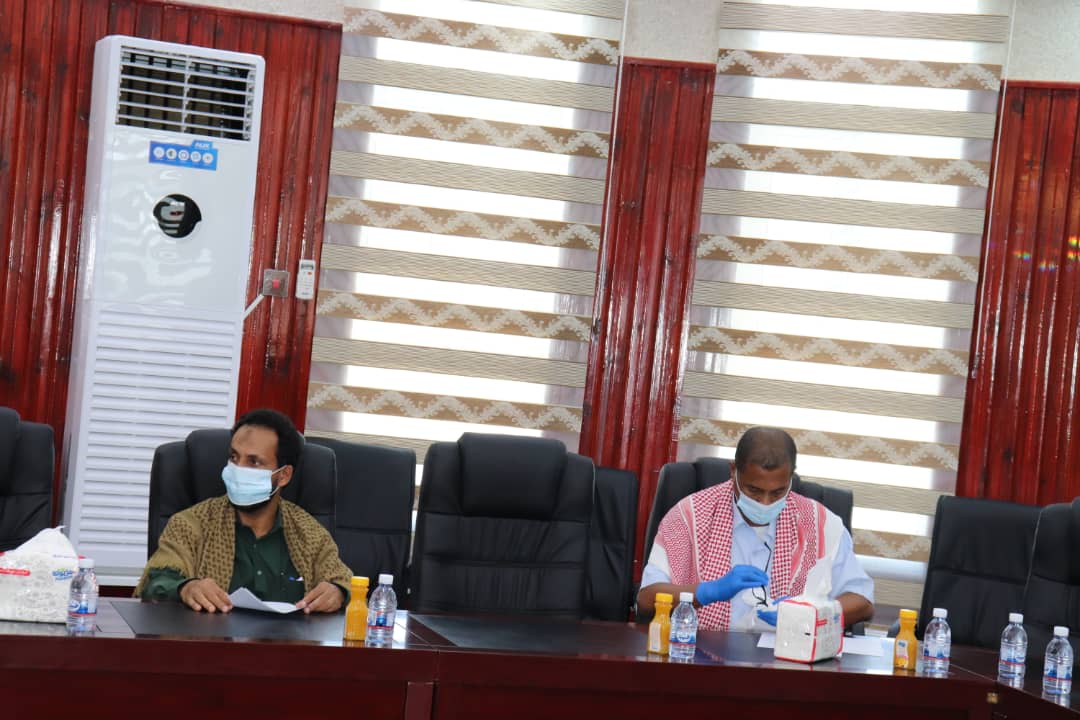 جاء ذلك في اجتماع موسع عقد بمكتبه اليوم لمناقشة الوضع الصحي في المديرية ومنها تنفيذ حملة الرش الضبابي والحملة التوعوية بمخاطر وباء كرونا والوقوف على احتياجات مركز السلطان قابوس الصحي من التجهيزات اللازمة للتعامل مع الحميات والحالات المشتبهه والمؤكده إصابتها بالوباء.