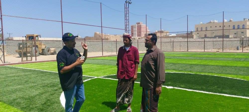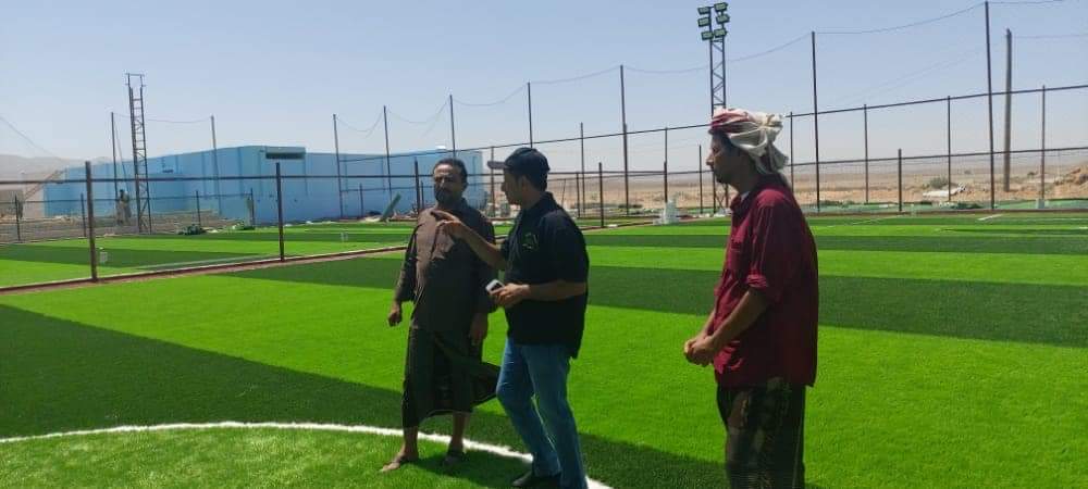 وخلال زيارة المدير العام للمديرية التقى بالمدير التنفيذي لشركة العشب الأخضر المهندس أحمد سويدان الكي أعطى نبذة تعريفية عن الشركة المنفذة التي نفذت العديد من المشاريع في الملاعب والحدائق على مستوى الخليج واليمن أبرزها تعشيب ملعب بارادم بالمكلا والملعب الأولمبي بسيئون وتنفيذ مشاريع الملاعب والحدائق من قبل طاقم مصري متميز بإشراف كلاً من المهندسين المنفدين للمشروع المهندس المصري أيمن أحمد الفهلاوي والمهندس المصري الآخر محمود محمد عبدالهادي والمساعدين اليمنيين كلاً من بدر محمد وخالد أحمد وبندر محمد.