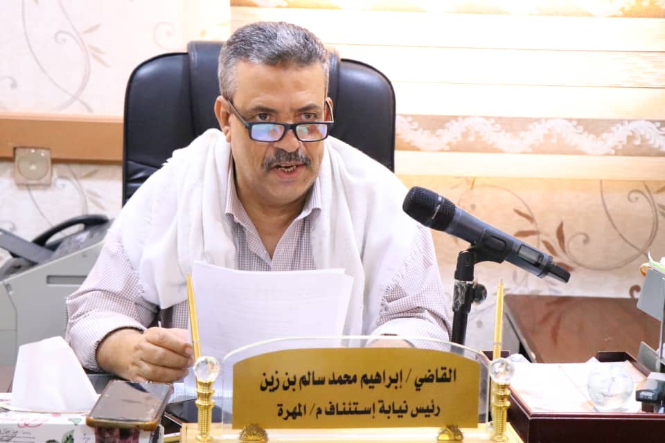 وخلال تصريح للقاضي إبراهيم محمد سالم زين رئيس نيابة استئناف محافظة المهرة أشار الى ان النيابة قررت اليوم اتلاف كمية من المضبوطات بموجب محضر قضائي بموجب توجيهات النائب العام بالجمهورية الدكتور احمد بن احمد الموساي والنيابة المتخصصة الجزائية، وسيتم عملية الاتلاف في ساحل محيفيف.
