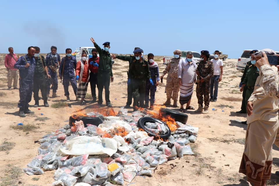اتلفت نيابة الاستئناف بمحافظة المهرة اليوم الاحد، قرابة طن من الحشيش المخدر والكريستال الشبو، بعد عملية ضبطها بالقرب من سواحل نشطون قبل عدة أشهر.