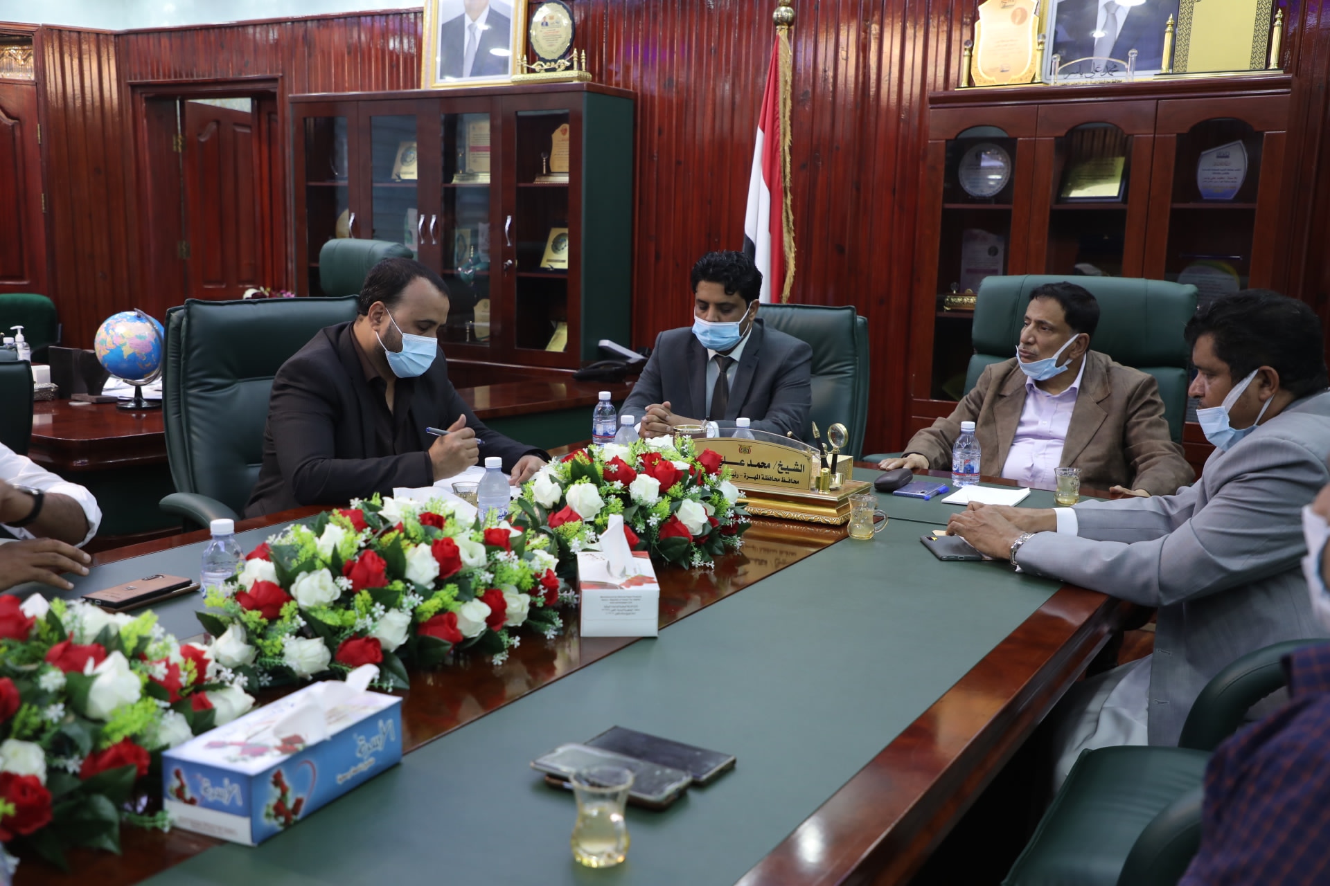 ترأس معالي الأستاذ محمد علي ياسر، محافظ محافظة المهرة – رئيس المجلس المحلي، اليوم الاثنين، اجتماعا مع مكتب الصحة العامة والسكان، للوقوف أمام الوضع الصحي بالمحافظة في أعقاب تزايد أعداد الإصابات والوفيات جراء وباء كورونا.
