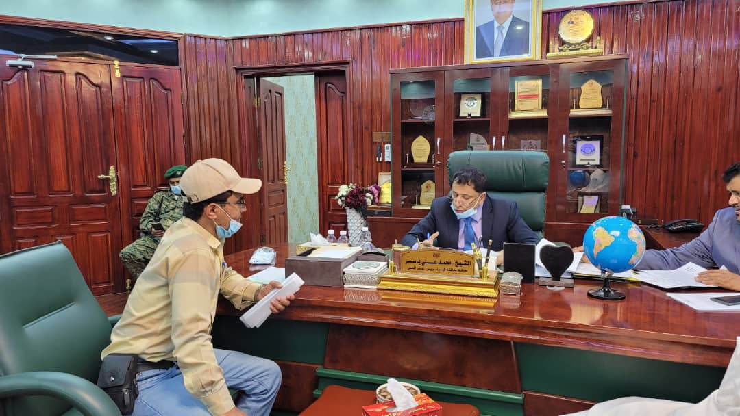 جاء ذلك؛ خلال لقاء المحافظ بن ياسر، بحضور الأمين العام للمجلس المحلي بالمحافظة الأستاذ سالم عبدالله نيمر، بالقائم بأعمال مدير عام وحدة تنفيذ المشاريع الممولة دوليًا بديوان عام وزارة الأشغال العامة والطرق المهندس ياسين الصبري.
