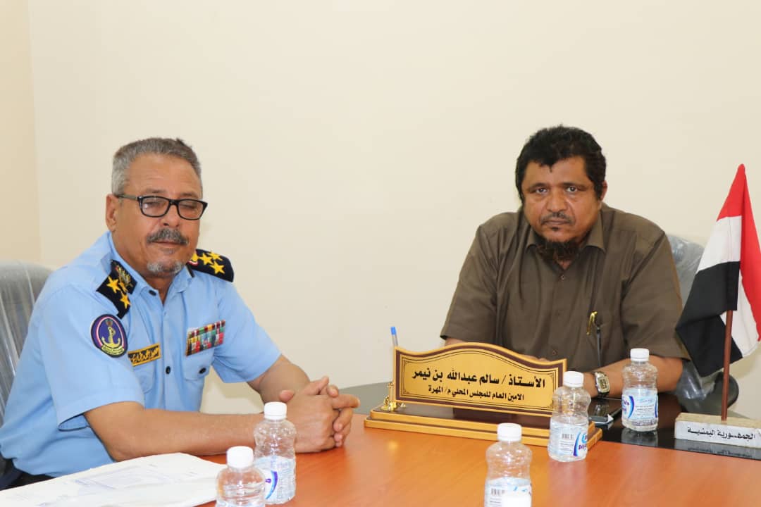 أكد الأمين العام للمجلس المحلي بمحافظة المهرة الأستاذ سالم عبدالله نيمر، على أهمية تعزيز إجراءات الأمن ومكافحة ظاهرة التهريب بكافة أشكالها للحفاظ على أمن واستقرار المحافظة، مشددا على ضرورة التعامل بحزم وحسم مع كافة عصابات التهريب ، خلال لقائه، اليوم، بقائد خفر السواحل بالمحافظة العميد ركن محمد طارش الحمادي.