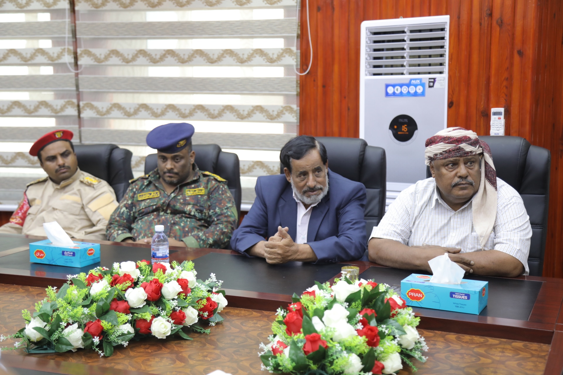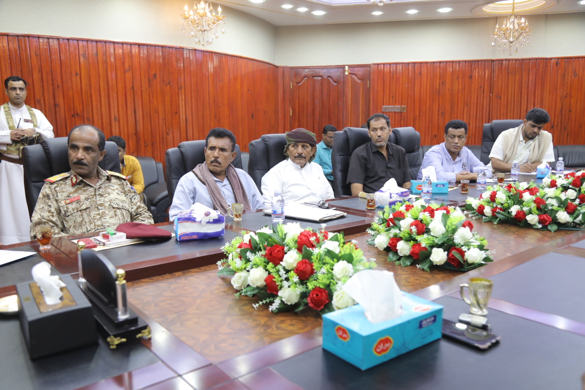 حضر الاجتماع مدير عام مديرية شحن الشيخ محمد بن محمد زعبنوت ومدير عام مكتب المالية الأستاذ عويضان سالم يسهول ومدير عام الشؤون المالية والإدارية الأستاذ عدنان محمد بادينار وقادة الأجهزة الأمنية والعسكرية بمنفذ شحن.
