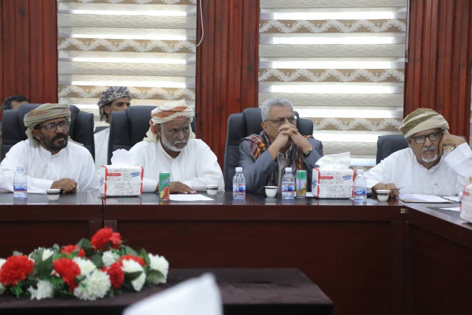 وناقش اللقاء الذي حضره الأمين العام للمجلس المحلي الأستاذ سالم عبدالله نيمر، ووكيل محافظة المهرة المشرف على قطاع التعليم الشيخ صالح محمد بن عليان ومدير عام الأمن والشرطة العميد مفتي سهيل صموده والشيخ توكل ياسين عضو مجلس الشورى، الأوضاع الاقتصادية الصعبة التي تشهدها البلاد إثر تدهور العملة المحلية والآليات والحلول والمقترحات التي تساهم في تخفيف وطأة المعاناة على المواطنين.