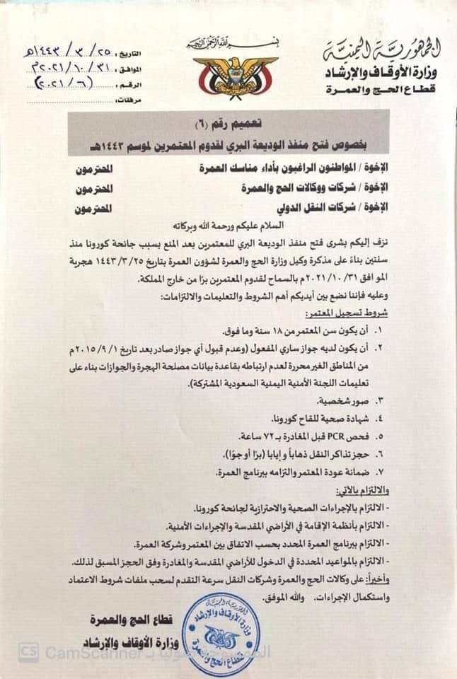و زف المدير العام لملتقى المهرة الأستاذ فهمي شملان البشرى لجميع أبناء المهرة عن فتح منفذ الوديعة البري لقدوم المعتمرين بعد المنع إثر جائحة كورونا ، داعيا الراغبين من المواطنين لأداء مناسك العمرة سرعة التسجيل لدى مكتب الوكالة الرئيس بمدينة الغيضة وفروعه بالمديريات .. ومؤكدا بأن مكاتب الوكالة فتحت أبوابها للتسجيل وترحب بالجميع مع تقديم كافة التسهيلات للزبائن والعملاء الكرام وتوفير ارقي وسائل الراحة والطمأنينة والسلامة أثناء السفر على متن أسطولها من الحافلات الحديثة وتقديم أفضل الخدمات للمعتمرين في مختلف المجالات.