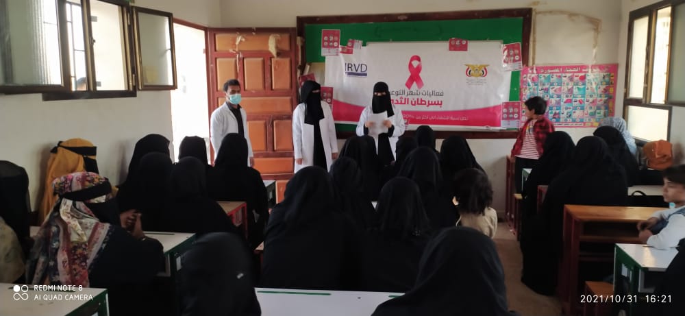 نفذت الجمعية الدولية لرعاية ضحايا الحروب والكوارث بجملة من الفعاليات الحاصة بالتوعية حول سرطان الثدي تحت إشراف وتنفيذ إدارة التثقيف والاعلام الصحي ممثل بالأستاذ أمين حسن سعيد، وذلك ضمن فعاليات الشهر الوردي شهر أكتوبر للتوعية بسرطان الثدي وقد تضمنت جلسات توعوية وملصقات عن سرطان الثدي وأهمية الكشف المبكر.