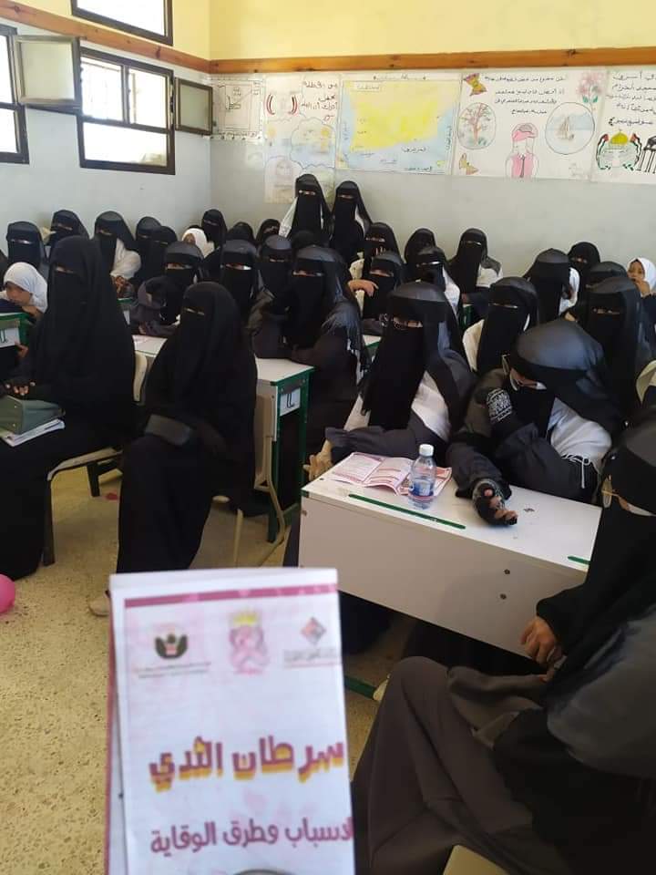 واستهدفت التوعية كلاً من مدرسة سمية و مدرسة 22 مايو ومدرسة الفقيد سعيد نصيب، من خلال المحاضرة التوعوية التي ألقتها الدكتورة أسمهان خميس عن سرطان الثدي وأعراضه ومسبباته وكيفية الوقاية منه، وكذلك كيفية الفحص الذاتي وخطواته، بالإضافة للتوعية من فيروس كورونا، وأيضاً توعية إذاعية من خلال الإذاعة المدرسية، وعروض مسرحية، وشملت التوعية عدة مدارس، ونزول مجتمعي لمنطقة حساي وطرح الأسئلة حول برنامج التوعية وتوزيع مبالغ نقدية تشجيعية على المشاركات بإجابات صحيحة في فقرة الأسئلة.