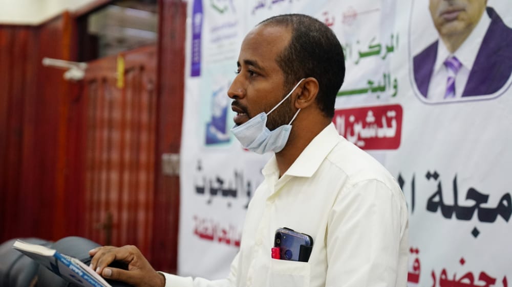 من جانبه أكد المشرف العام على المجلة عبدالله جمعان بن شريه على أن أعضاء هيئة التحرير قاموا بجهود مضنية للملمة الشأن البحثي وأصدار هذه المجلة، شاكراً السلطة المحلية بالمحافظة على دعمها للمركز وكل من ساهم في إنجاح هذه المجلة.