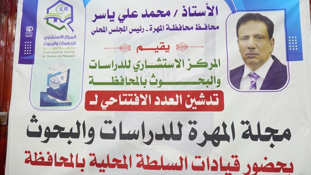 دشن الأمين العام للمجلس المحلي بمحافظة المهرة الأستاذ سالم عبدالله نيمر، اليوم الإثنين، العدد الافتتاحي ل مجلة “المهرة للدراسات والبحوث” التي يصدرها المركز الاستشاري للدراسات والبحوث.