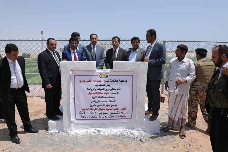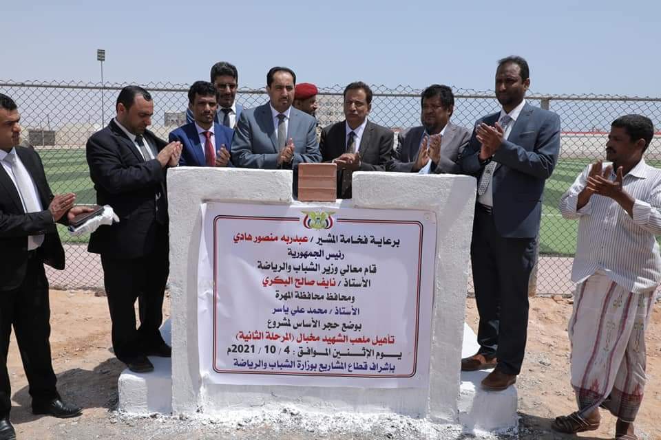 وضع معالي وزير الشباب والرياضة الأستاذ نائف صالح البكري ومعالي الأستاذ محمد علي ياسر محافظ محافظة المهرة – رئيس المجلس المحلي، اليوم، جحر الأساس لمشروع تأهيل ملعب الشهيد مخبال بمدينة الغيضة “المرحلة الثانية” الذي يُنفذ تحت إشراف قطاع المشاريع بوزارة الشباب والرياضة.