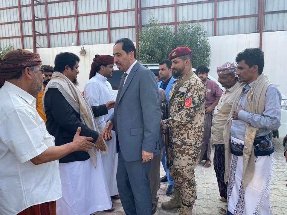 ورحبت قيادات السلطة المحلية ومشايخ بوصول المحافظ بن ياسر إلى المحافظة بسلامة الله وحفظه ورعايته ونجاح زيارته الرسمية للسعودية وسلطنة عمان والزيارة العلاجية إلى الأردن.