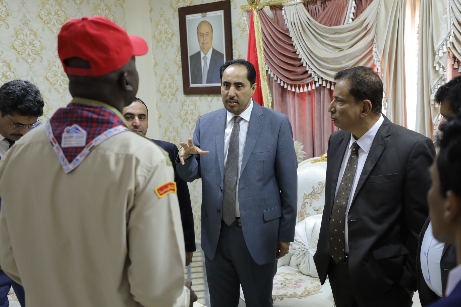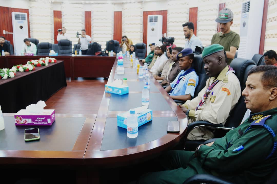 وكان في استقباله وزير الكهرباء والطاقة الدكتور أنور محمد كلشات والأمين العام للمجلس المحلي بالمحافظة الأستاذ سالم عبدالله نيمر ووكيل المحافطة لشؤون الشباب الأستاذ بدر سالم كلشات ومدير عام مكتب الشباب والرياضة بالمحافظة الأستاذ محمد عمر سويلم ومدير الأمن العميد مفتي سهيل صمودة ورئيس فرع إتحاد كرة القدم الإثنين عمر ومدير القصر الجمهوري الأستاذ أحمد عبدالرحمن بن حروف ونائب مدير عام مكتب الشباب الأستاذ عادل رزق خودم.