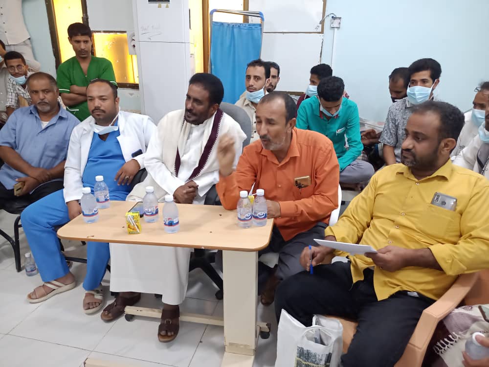 اجتماع موسع يناقش قضايا العاملين الصحيين بمستشفى الغيضة المركزي